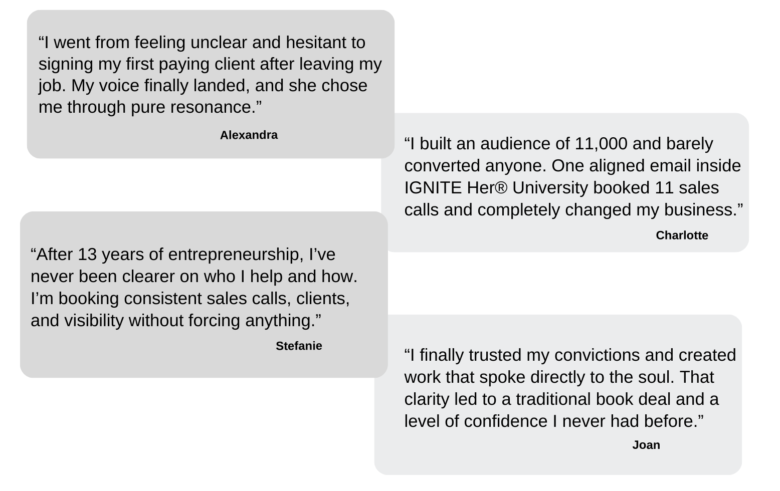 If you're ready to start or grow the business you were designed for, loving the work you do, and getting paid very well to do it—then the IGNITE Her® University was built for you.